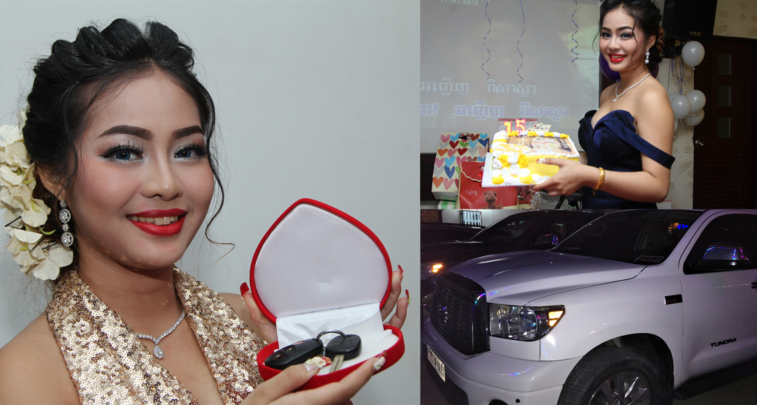 ក្នុងពិធីខួបកំណើតគម្រប់អាយុ១៥ឆ្នាំ នៅហាង”សប្បាយKTV” ម្ដុំរង្វង់មូលផ្សារដើមថ្កូវនៅរាត្រីថ្ងៃទី៨ ខែធ្នូ យប់មិញនេះតារាចម្រៀងកញ្ញាសោភា ទេពី ទទួលបានកាដូរថយន្តម៉ាកTundra 2010 តម្លៃជាង៤ម៉ឺនដុល្លារ ពីលោកផ្កាយ២ ដែលជាឪពុកបង្កើតរបស់នាងគួរឲ្យភ្ញាក់ផ្អើល។