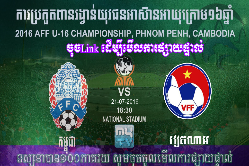 សូម​រង់​ចាំ​ទស្សនា​ការ​ប្រកួត​រវាង​ក្រុម​ កម្ពុជា​ VS​ វៀត​ណាម​ (U-16)​