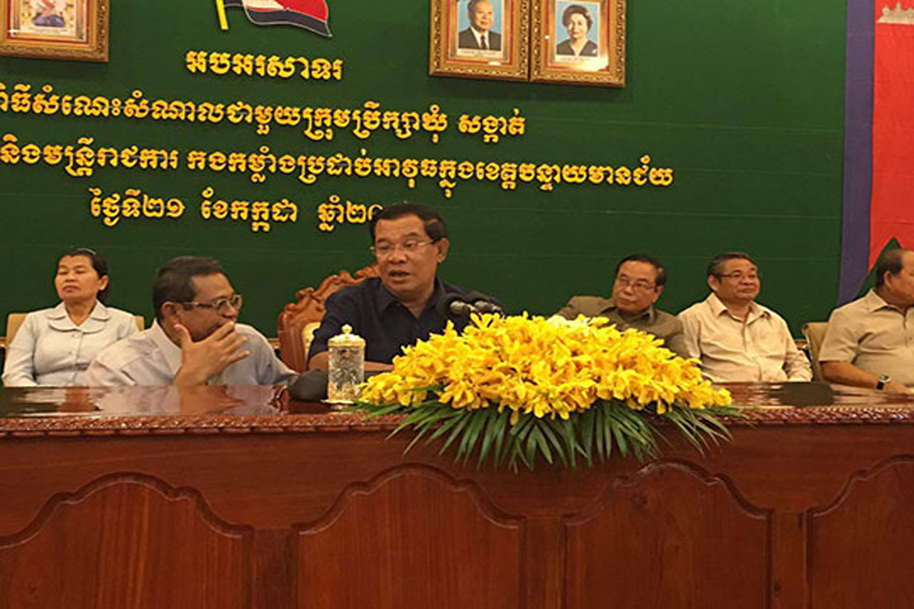 ខេត្ដបន្ទាយមានជ័យ៖ នាយករដ្ឋមន្ត្រីកម្ពុជា សម្តេច ហ៊ុន សែន ប្រាប់ទៅឧបនាយករដ្ឋមន្រ្ដី កែ គឹមយ៉ាន ប្រធានក្រុមការងារថ្នាក់ជាតិ ចុះជួយខេត្ដបន្ទាយមានជ័យ និងបញ្ជាទៅកម្លាំងប្រដាប់អាវុធទាំងអស់ ទប់ស្កាត់ និងលុបបំបាត់ចោលឲ្យអស់ នៅកុងត្រូលជជុះ និងជញ្ជីងថ្លឹងអនាធិបតេយ្យតាមដងផ្លូវ ក្នុងខេត្ដមួយនេះ ។