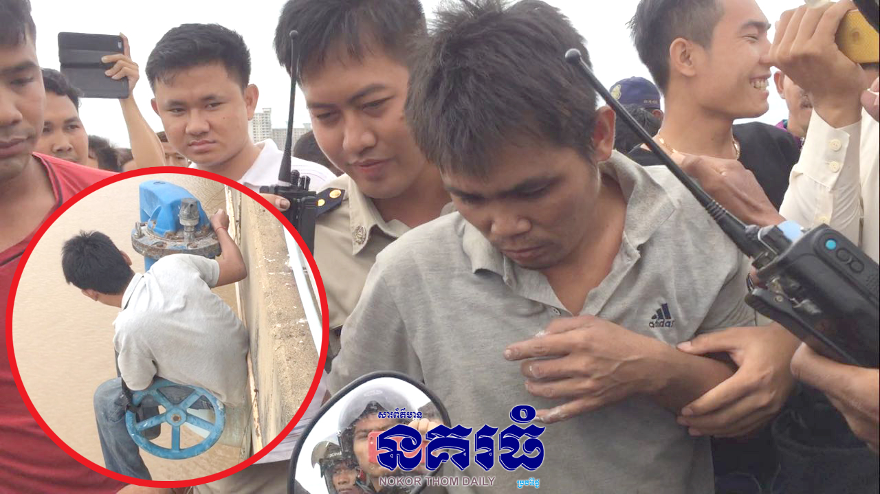 ភ្នំពេញ៖ បុរស​វ័យជាង៣០ឆ្នាំ​ ស្រវឹងស្រាតូចចិត្តអត់មានលុយទិញស្រាស២លីត្រផឹកថែមទៀតបានសម្រេចទៅលោត​ទឹក​ស្ពានជ្រោយចង្វារ សម្លាប់ខ្លួនមិនបានសម្រេច​ ត្រូវសមត្ថកិច្ចឃាត់ទាន់ បង្កឲ្យមានការកកស្ទះចរាចរណ៍កាលពី​វេលាម៉ោង៧និង៣០នាទីព្រឹក ថ្ងៃទី១៦ ខែ