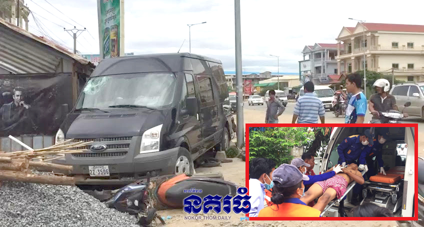 ភ្នំពេញ ៖ ជាងជួសជុលម៉ូតូម្នាក់រងរបួសធ្ងន់បាក់ឆ្អឹងជំនី ត្រូវបានរថយន្តសង្រ្គោះរបស់អង្គភាព៧១១ ដឹកបញ្ជូនទៅសង្រ្គោះនៅមន្ទីរពេទ្យកាល់ម៉ែត្រភ្លាមៗ ខណៈដែលជនរងគ្រោះកំពុងអង្គុយជួសជុលឲ្យភ្ញៀវ ស្រាប់តែមានរថយន្តហ្វ័តរបស់ក្រុមហ៊ុនដឹកអ្នកដំណើរមួយគ្រឿង បើកបោះពួយល្បឿនលឿន សង្ស័យអ្នកបើកបរងោកមួយភាំង ទើបរេចង្កូតជ្រុលបុកចូលតូបជួសជុលម៉ូតូ កាលពីវេលាម៉ោង១០និង៥០នាទីព្រឹក ថ្ងៃទី១៦ ខែកក្កដា ឆ្នាំ២០១៧ ស្ថិតនៅលើកំណាត់ផ្លូវជាតិលេខ៣ ភូមិព្រៃព្រីងត្បូង សង្កាត់ចោមចៅ ខណ្ឌពោធិ៍សែនជ័យ ។
