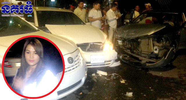 ភ្នំពេញ ៖ នារីវ័យក្មេងម្នាក់ចេញពីផឹកស៊ីស្រវឹងទោរទន់ បានបើករថយន្តម៉ាកកូរ៉ូឡា ទៅបុកគូទរថយន្តកាម៉ារីឆ្លាម បណ្តាលឲ្យរងកាខូចខាតតិចតួចមិនព្រមឈប់ដោះស្រាយទេ ព្យាយាមបើករត់គេចជ្រុលទៅបុករថយន្ត២គ្រឿងទៀត នៅផ្លូវបំបែកជាបួន បង្កឲ្យមានការភ្ញាក់ផ្អើលឡើងនៅវេលាម៉ោង១១និង៣០នាទីយប់ ថ្ងៃទី២១ ខែកក្កដា ឆ្នាំ២០១៧ ចំណុចផ្លូវ១៤៣ កែងនិង២៧៨ ក្នុងសង្កាត់អូឡាំពិក ខណ្ឌចំការមន។