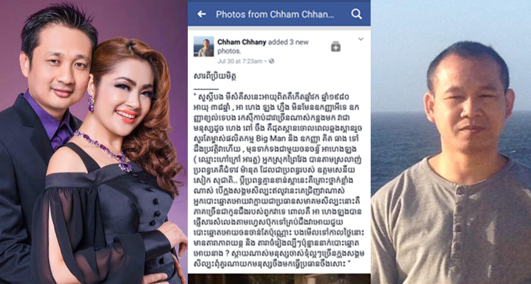 លោកChham chhany  បានបង្ហោះសំណេរថា” ហេង ទ្បុង ហ្នឹង មិនមែនឧកញ្ញាអីទេ ឧកញ្ញាខ្យល់ទេបង រកស៊ីកាប់ដាវច្រើនណាស់កន្លងមក វាជាមនុស្សដូច ហេង ពៅ ចឹង គឺដុតស្ពានចោលពេលឆ្លងស្ពានរួច សួរតែម្ចាស់ផលិតកម្ម Big Man និង ឧកញ្ញា គិត ធាង ទៅដឹងប្រវត្តិវាហេីយ , មុនទាក់ទងជាមួយចនចន្ទ័ អាហេងទ្បុង ( ឈ្មោះហៅក្រៅ អារត្ន) អ្នកស្រុកព្រៃវែង បានតាមស្រលាញ់ប្រពន្ធគេគឺជំទាវ ម៉ានុត ដែលជាប្រពន្ធរបស់ ឧត្តមសេនីយ សៀក សុជាតិ.. ប្ដីប្រពន្ធគ្មានខាន់ស្លានេះគឺគ្រោះថ្នាក់ខ្លាំងណាស់ បើក្នុងសង្គមសិល្បះឥលូវនេះគេជ្រិញវាណាស់ អ្នកបោះឆ្នោតអោយវាក្លាយជាប្រធានសមាគមសិល្បះនោះគឺភាគច្រើនជាកូនជឹងរបស់ពួកវាទេ ពោលគឺ អា ហេងទ្បុងបានផ្ញើរសារសំលេងតាមហ្វេសប៊ុកទៅគ្រប់ជឹងវាអោយជួយបោះឆ្នោតអោយចនចាន់តែប៉ុណ្ណោះ បងមើលទៅកាលថ្ងៃនោះមានតារាភាពយន្ត និង តារាចំរៀងល្បីៗប៉ុន្នាននាក់បោះឆ្នោតអោយនាង ? ស្ដាយណាស់មនុស្សចាស់ទុំល្អៗច្រើនក្នុងសង្គមសិល្បះពុំគួរណាយកមនុស្សចឹងមកធ្វើប្រធានចឹងសោះ “។លោក Chham chhany បញ្ជាក់ថាសំណេរខាងលើនេះជារបស់ប្រិយមិត្តដែលផ្ញើរមកហ្វេសប៊ុករបស់លោក។