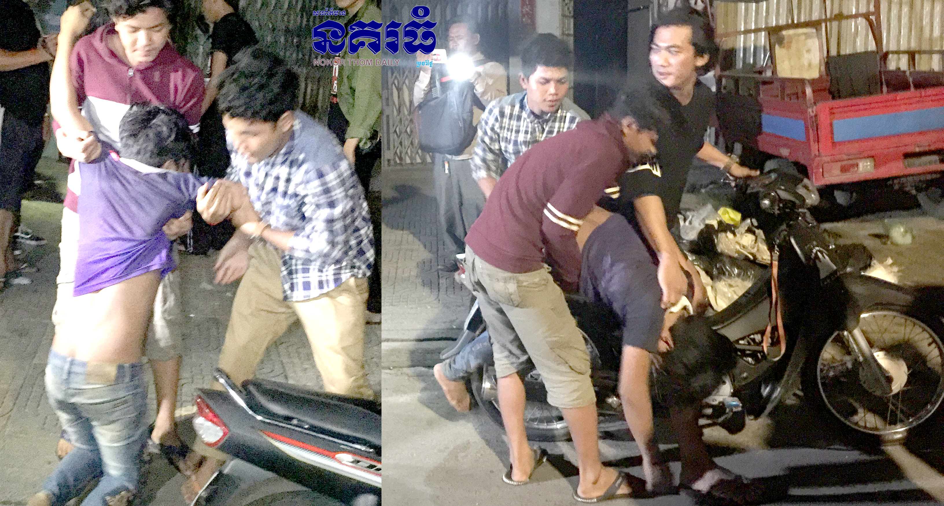 ប្រភពដដែលបានបន្តទៀតថា នៅពេលដែលពួកគេជាជនរងគ្រោះភ័យពេក បានបន្ថែមល្បឿនម៉ូតូ ដើម្បីរត់គេចពីក្រុមដែលដេញវាយពួកគេ ធ្វើឲ្យម៉ូតូរបស់ពួកគេមួយគ្រឿង បានជ្រុលទៅបុករបងផ្ទះរបស់ប្រជាពលរដ្ឋពេញទំហឹង បណ្តាលឲ្យម៉ូតូពួកគេដួល រងរបួសសន្លប់ស្តូកស្តឹងបុរសម្នាក់ ភ្លាមៗនោះក្រុមជនបង្កបានវាយពួកគេថែមទៀត បណ្តាលឲ្យមានអ្នកខ្លះរបួស និងខ្លះអត់មានរងរបួស រួចហើយពួកក្រុមជនបង្កបាននាំគ្នាជិះម៉ូតូរត់គេខ្លួនបាត់ស្រមោលអស់ទៅ ។