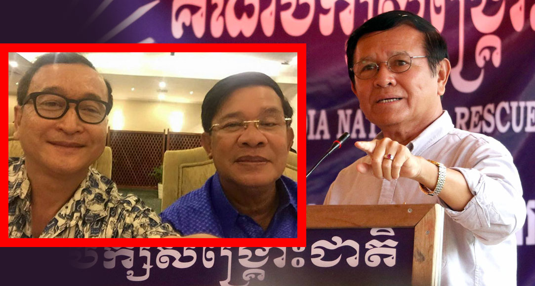 ភ្នំពេញ ៖ ប្រធានគណបក្សសង្គ្រោះជាតិ លោកកឹម សុខា បានលើកឡើងហាក់ក្នុងន័យ ដៀមដាមទៅដល់លោកសម រង្ស៊ី អតីតប្រធានគណបក្សសង្គ្រោះជាតិ និងសម្តេចហ៊ុន សែន ប្រធានគណបក្សប្រជាជនកម្ពុជាថា អ្នកនយោបាយខ្មែរកន្លងមក ពេលត្រូវរ៉ូវគ្នា ធ្វើជាឱបរឹតស្និទ្ធស្នាលគ្នាទាំងគ្រួសារ តែពេលខ្វែងគំនិតគ្នា វាយប្រហារគ្នាស្ទើរតែស៊ីសាច់ហុតឈាម។