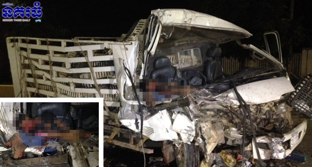 រថយន្តដឹកមាន់បុករថយន្តក្រឡុកស៊ីម៉ងត៍ពីក្រោយ ​ស្លាប់ម្នាក់ របួស២នាក់