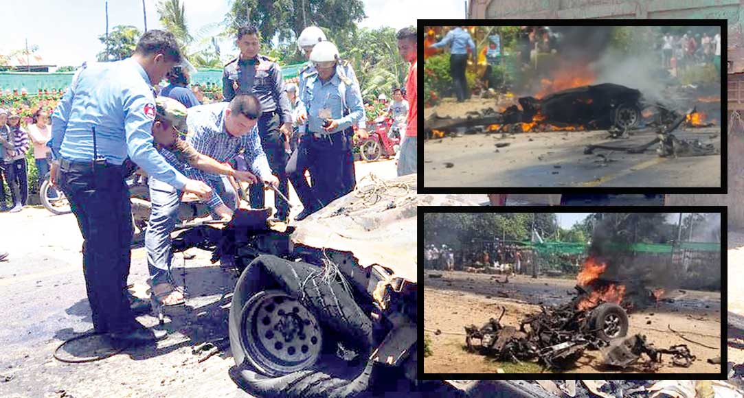 ខេត្តបន្ទាយមានជ័យ ៖ រថយន្តដឹកផាវ គ្រាប់បែក១គ្រឿង កំពុងបើកបរនៅលើផ្លូវ ជាតិសុខៗ ក៏ស្រាប់តែផ្ទុះឡើងយ៉ាងកក្រើក ធ្វើឱ្យរថយន្តត្រូវផ្ទុះខ្ទេចជាបំណែកៗ និងមាន ការឆាបឆេះយ៉ាងសន្ធោសន្ធៅ ចំណែកអ្នកជិះ ក្នុងរថយន្ត៣នាក់ (ម្ចាស់រថយន្ត រួមនឹងព្រូរថយន្ត២នាក់) ត្រូវស្លាប់យ៉ាងអណោចអាធ័ម បំផុត ដោយសារតែសពត្រូវបែកខ្ទេចសាច់ ដងខ្លួនជាបំណែកៗ ស្ទើរមើលលែងយល់ ក្រៅពី នេះ ក៏មានអ្នកដំណើរ២នាក់ផ្សេងទៀតដែល កំពុងធ្វើដំណើរលើដងផ្លូវ ក៏ទទួលរងរបួសផងដែរ។