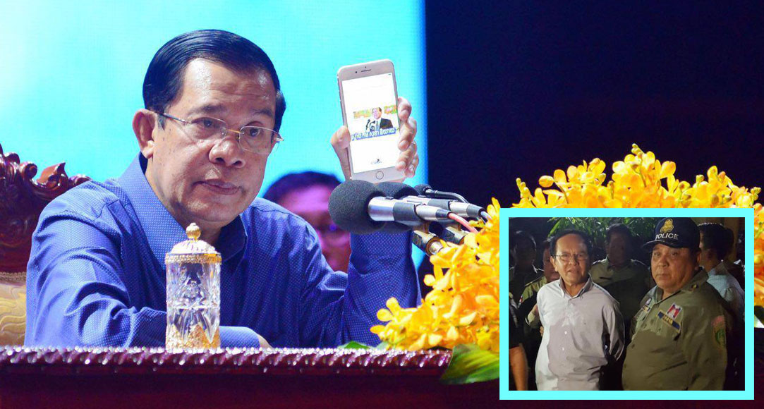 សម្តេចនាយករដ្ឋមន្ត្រី ហ៊ុន សែន បានមាន ប្រសាសន៍នៅពេលនោះថា “យប់មិញនេះ យើងត្រូវចាប់លោកកឹម សុខា ទាំងយប់ អំពីទោសក្បត់ជាតិតែម្តង។ ហេតុអីយើងត្រូវចាប់? បើគ្មានរឿងធ្ងន់ យើងមិនចាំបាច់ចាប់ធ្វើអីទេ តែរឿងនេះវាធ្ងន់ពេក ហើយវាកំពុងតែឈានជាបណ្តើរៗ យើងក៏បានស្វែងរកអាបាតដៃទី៣ ជាអ្នកណា? ឥឡូវយើងរកឃើញអាបាតដៃទី៣ហើយ…។ ឥឡូវព្រឹកមិញនេះ បានបញ្ចាំងគ្រប់ទូរទស្សន៍ហើយ វីដេអូនេះវាវែងបន្តិច តែបើវីដេអូចាក់ទាំងអស់ អាហ្នឹងស្ថានទម្ងន់ហ្នឹង វាកាន់តែធ្ងន់ហើយ។ ប៉ុន្តែរឿងក្បត់ជាតិ ហើយដែលមានចែងនៅក្នុងក្រមព្រហ្មទណ្ឌត្រឹមត្រូវ តម្រូវឱ្យចាប់ខ្លួន ហើយមិនត្រូវបរទេសណាមក លូកលាន់ចំពោះកិច្ចការរបស់កម្ពុជាទេ។ ជាពិសេស អ្នកដែលបាតដៃទី៣ ដែលធ្លាប់ប្រើលន់ នល់ ធ្វើរដ្ឋប្រហារ ឥឡូវរឿងដដែលវាកើត…។ បន្ទាប់ ពីការនិយាយហើយ បានជាមានងាប់មនុស្សនៅ ផ្លូវវេងស្រេងអ្វីៗទាំងអស់ មនុស្សនេះអ្នកកសាង។ ដូច្នេះការចាប់ខ្លួននៅពេលនេះ គឺជាការទូទាត់ បញ្ជីពីដើមដល់ចប់ ហើយបាតដៃពីក្រោយ វា នៅតែដដែល គឺអាមេរិកាំង។ អំពើក្បត់ជាតិ ឃុបឃិតជាមួយបរទេស ក្បត់ជាតិខ្លួនឯង គឺ តម្រូវឱ្យមានការចាប់ខ្លួនភ្លាមៗ។ មិនអាចទេ ក្នុងពាក្យសម្បថ អ្នកដែលចូលស្បថនៅចំពោះ ព្រះភក្ត្រ ព្រះមហាក្សត្រ ចំពោះស្វេតច្ឆត្រ ចំពោះ ព្រះសង្ឃរាជ្យទាំង២គណៈ សុទ្ធតែបញ្ជាក់បង្ហាញ អំពីការដែលមិនឱ្យពួកបរទេស មកបង្គាប់បញ្ជា គោលនយោបាយក្នុងនិងក្រៅប្រទេស ឥឡូវ នេះសារភាពច្បាស់ណាស់ “ខ្ញុំមិនមែនធ្វើតាម ចិត្តខ្លួនឯងទេ គឺមានសាស្ត្រាចារ្យ…” ស្អីៗ អ៊ីចឹង បម្រើបរទេសដាច់ខាតហើយ។ បងប្អូន បាន បោះឆ្នោតគាំទ្រគេខុសហើយ ស្មារតីជាតិនិយម នៅកន្លែងណា? ឯករាជ្យជាតិ នៅកន្លែងណា? បានជាមកអំពាវនាវ ឱ្យគេមកជាន់ឈ្លីអធិបតេយ្យរបស់យើងបែបនេះ។ ដូច្នេះការចាប់ខ្លួន ត្រូវធ្វើភ្លាម អត់មានបង្អង់ទេ ហើយបើសិន ជាគណបក្សហ៊ានចេញការពារ គណបក្សនោះ ក៏នឹងត្រូវជួបវាសនានៃការរំលាយចោលគណបក្ស។ ឥឡូវមេដឹកនាំសង្គ្រោះជាតិ ខ្លួនត្រូវ ទទួលខុសត្រូវបែបណា? ដើម្បីធានាជាមួយ នឹងប្រជាពលរដ្ឋ? ដើម្បីធានាថា បក្សខ្លួនមិនត្រូវបានរំលាយ? ហើយរឿងនេះ យើងទុកឱ្យតុលាការ ដើម្បីនឹងវិនិច្ឆ័យទៅ។ យោងទៅលើ ច្បាប់ការជាប់គុកអំពីបទក្បត់ជាតិបែបនេះ គឺ ក្នុងរង្វង់ពី១៥ ទៅ៣០ឆ្នាំ វាមិនយូរទេ”។