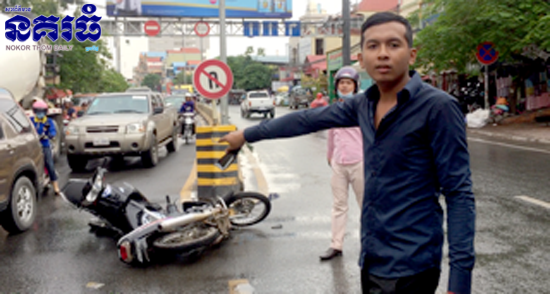 បុរសម្នាក់ជិះម៉ូតូស៊ុយសូគីវីវ៉ា បានប្រាប់ថា មុនកើតហេតុគាត់បើកម៉ូតូតាម១៩៩ ក្នុងទិសដៅពីផ្សារសុវណ្ណា ឆ្លងមកផ្លូវ២៧១ ស្រាប់តែឆ្លងបានពាក់កណ្ដាលផ្លូវ ក៏មានម៉ូតូឌ្រីមសង់ បើកបរដោយបុរស២នាក់ ជិះពីមន្ទីរពេទ្យរុស្សី មកស្ពានអាកាសស្ទឹងមានជ័យ មកបុកម៉ូតូគាត់ សំណាងល្អលើកជើងទាន់ កុំអីច្បាស់ជាជើងត្រូវបាក់ ហើយនឹកឃើញមិនចង់វែងឆ្ងាយលើកម៉ូតូរៀងខ្លួន តែភាគីខាងបុរសបើកម៉ូតូឌ្រីមសង់ ចង់ឲ្យសង អីចឹងមានតែឲ្យវាស់វែងតាមច្បាប់ចរាចរណ៍ចុះ ។