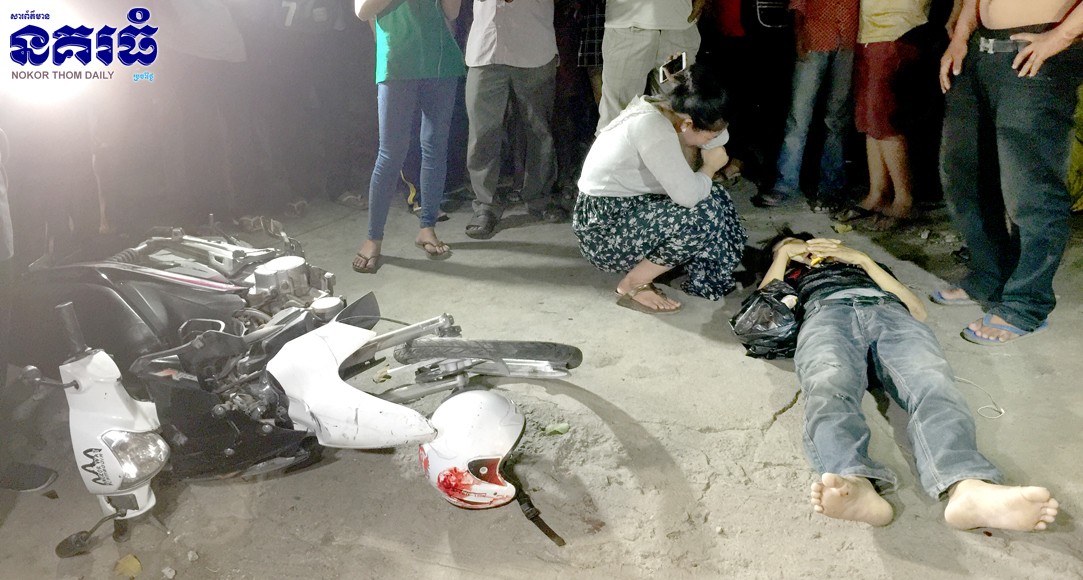 ភ្នំពេញ ៖ បុរសម្នាក់​កំពុង​តែជិះម៉ូតូ​ធ្វើដំណើរ​តាមផ្លូវ​ ក៍ស្រាប់តែមាន​បុរស​បីនាក់​ទៀត ​ដែល​ជាជនជាតិ​វៀតណាម​ បានជិះម៉ូតូ​មួយគ្រឿង​បញ្ច្រាស​ទិសដៅ​ចរាចរណ៍​ បានជ្រុលទៅបុក​ចំពីមុខពេញ​ហឹង​ បណ្តាល​ឲ្យ​ស្លាប់​ម្នាក់​ និង​រងរបួស​ធ្ងន់​បីនាក់​ ហេតុការណ៍​នេះ​បានកើតឡើង​នៅ​វេលាម៉ោង​៩យប់​ ថ្ងៃទី​០៦​ ខែកញ្ញា​ ឆ្នាំ​២០១៧​ ទុលមុខអតីត​រោងចក្រ​តាក់​ហ្វាន់​ ផ្លូវ​ជាតិ​លេខ​២ ​ភូមិព្រែក​តានូ  សង្កាត់​ចាក់​អង្រែលើ​ ខណ្ឌមានជ័យ​។