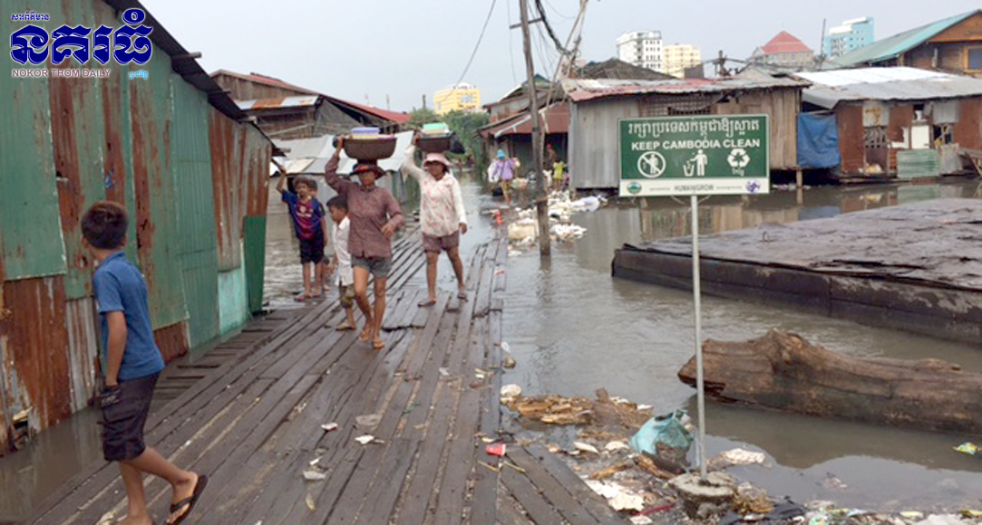 ភ្នំពេញ ៖ កាលពីព្រឹកថ្ងៃទី០៩ ខែកញ្ញា ឆ្នាំ២០១៧ មានមេឃភ្លៀងធ្លាក់មួយមេធំ បណ្ដាលឲ្យជន់លិចផ្ទះប្រជាពលរដ្ឋដែលរស់នៅតាមមាត់ប្រឡាយស្ថានីយបូមទឹកមាន២សង្កាត់ តាមផ្លូវ១០៥ សង្កាត់បឹងត្របែក ផ្លូវ៥០៨ ក្រុម២៥ ស្ថិតនៅភូមិ៤ សង្កាត់ផ្សារដើមថ្កូវ ខណ្ឌចំការមន ។