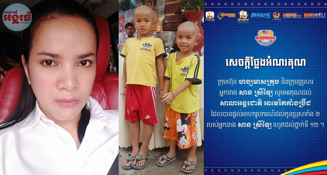 កូនទាំង២ របស់សាន ស្រីឡៃ ទទួលបានអាហារូបករណ៍នៅសាលាអន្តរជាតិអាមេរិកាំង ខណៈពេជ្រ សោភា ចេញថ្លៃរ៉ាប់រងចំណាយបុណ្យ៧ថ្ងៃ
