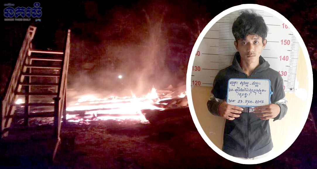 ខេត្តកណ្តាល ៖ បុរសជាប្តីចិត្តកំណាចម្នាក់ ក្រោយពីផឹកស៊ីស្រវឹង ក៏រករឿងឈ្លោះវាយដំប្រពន្ធយ៉ាងចាស់ដៃ លុះឪពុកម្តាយក្មេក រួមនិងបងប្អូនសាច់ថ្លៃ ចេញមុខឃាត់ និងស្តីបន្ទោស ២-៣ម៉ាត់ ស្រាប់តែជនកំណាចរូបនេះ បានគំរាមថា នឹងដុតផ្ទះកម្ទេចចោល លុះពេលក្រុមគ្រួសារកំពុងដេកលង់លក់ កូនប្រសាចិត្តភ្លើងរូបនេះ ក៏ធ្វើសកម្មភាពដុតផ្ទះ បណ្តាលឱ្យឆេះខ្ទេចគ្មានសល់ បង្កឱ្យមានការភ្ញាក់ផ្អើលឡើង កាលពីវេលាម៉ោង៣និង៣០នាទីទៀបភ្លឺ ថ្ងៃទី២៣ ខែតុលា ឆ្នាំ២០១៧ នៅចំណុចភូមិ កោះខ្នុរថ្មី ឃុំព្រែករកា ស្រុកកណ្តាលស្ទឹង។