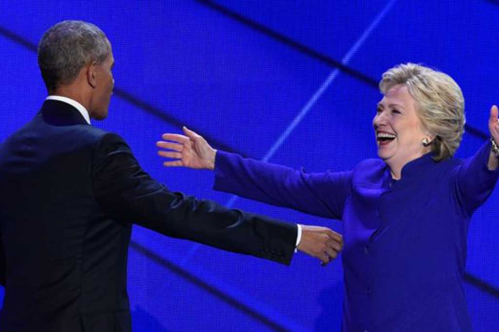 លោកអូបាម៉ា បានថ្លែងកោតសរសើរ លោកស្រីគ្លីនតុន នៅឯអង្គសន្និបាតគណបក្ស ប្រជាធិបតេយ្យ នៅហ្វីឡាដេលហ្វៀ (Philadelphia) ថា លោកស្រីជាបេក្ខជនដែលមាន លក្ខណៈសម្បត្តិល្អបំផុត ក្នុងការដឹកនាំសេតវិមាន។