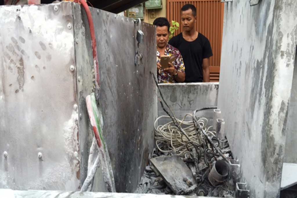 ភ្នំពេញ៖ ក្រុមជាងផ្សារដែករបស់អគ្គិសនីកម្ពុជា ផ្សារធ្លាក់កម្ទេចផ្កាភ្លើងចំទុយោហ្គាស ឆេះផ្អើលថាផ្ទុះធុងហ្គាស ប្រជាពលរដ្ឋរត់ឆោឡោបង្កឲ្យមានការភ្ញាក់ផ្អើលកាលពីវេលា ម៉ោង៩ព្រឹកថ្ងៃទី២៩ ខែ កក្ដដា នៅមុខផ្ទះលេខ៤៣F តាមផ្លូវ៤៣០ ក្រុម១០ ភូមិ២ សង្កាត់ផ្សារដើមថ្កូវ ខណ្ឌចំការមន ។