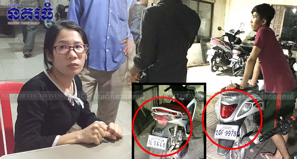 ភ្នំពេញៈ នារីម្នាក់ចេញពីសាលារៀនត្រលប់ទៅផ្ទះវិញ ជិះម៉ូតូជិតដល់ផ្ទះទៅហើយ ក៍ស្រាប់តែមានបុរសជាជនសង្ស័យ២នាក់ បានជិះម៉ូតូចំនួន២គ្រឿង បានធ្វើសកម្មភាពភ្ជង់ប្លន់យកកាបូបលុយបានសំរេច តែបន្សល់ទុកម៉ូតូរបស់ជនសង្ស័យមួយគ្រឿងនៅកន្លែងកើត។ ហេតុការណ៍នេះបានកើតឡើងនៅវេលាម៉ោង ៨និង៣០នាទីយប់ ថ្ងៃទី១៤ ខែ វិច្ឆកា ឆ្នាំ២០១៧ ចំណុចផ្លូវបេតុងអត់លេខ ក្បែរនិងតេប៉ូប្រេងឥន្ធនៈតេលា ភូមិភ្នាត សង្កាត់ស្ទឹងមានជ័យ ២ ខណ្ឌមានជ័យ ។