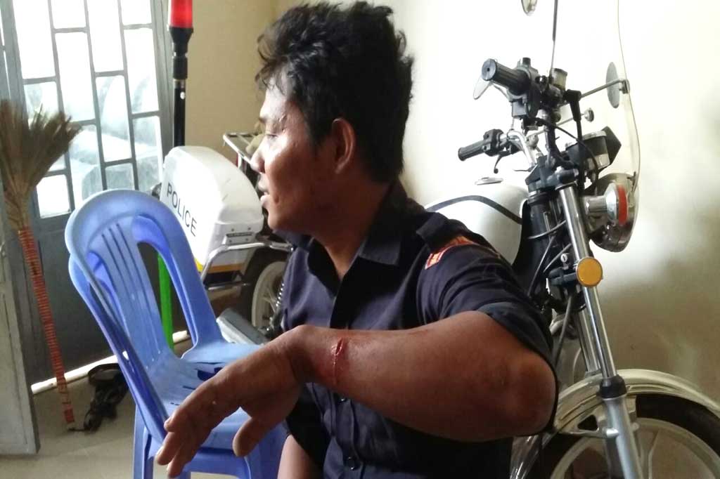 តានសំដីជនរងគ្រោះជាប្អូនបានប្រាប់សមត្ថកិច្ចថា នៅមុនកើតហេតុ គាត់បានធ្វើម្ហូបឆ្អិនដាក់ក្នុខ្ទះ ហើយជនបង្កជាបងបានយកចានមកដួសបាយ និងសាច់ក្នុងខ្ទះហូប ពេលនោះគាត់បានស្តីឲ្យថា(ចេះស៊ីដែល) ពាក្យនេះធ្វើឲ្យបងជាជនបង្កខឹងបានស្តោះទឹកមាត់ចូលក្នុងខ្ទះសាច់ ហើយបានលើសាច់នោះ ជះចោលទៅដីក៍មានទំនាស់ឈានប្រើហិង្សា ហើយជនបង្កបានយកកាំបិតចាក់មកលើគាត់ ត្រូវកំពួនដៃខាងឆ្វេងរយ៉ះប៉ុន្តែមិនធ្ងន់ធ្ងរទេ ។