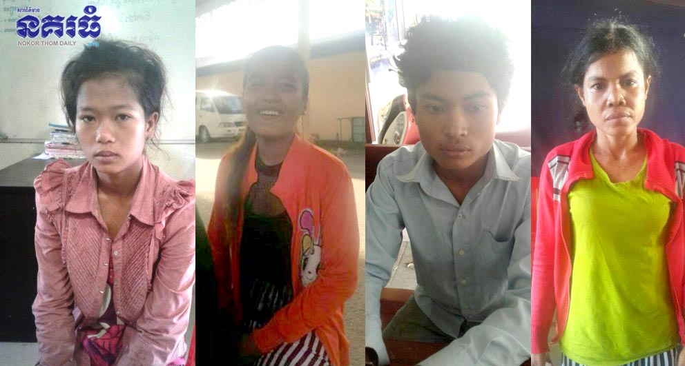 ជនសង្ស័យទាំង៥នាក់ ដែលត្រូវសមត្ថកិច្ចចាប់ឃាត់ខ្លួននោះ រួមមាន ទី១-ឈ្មោះកែវ នី ភេទស្រី អាយុ៣៩ឆ្នាំ ទី២-ឈ្មោះងួន មេសា ភេទប្រុស អាយុ១៩ឆ្នាំ ទី៣-ឈ្មោះកា ដាវី ភេទស្រី អាយុ២០ឆ្នាំ ទី៤-ឈ្មោះខឹម ទូច ភេទស្រី អាយុ៦០ឆ្នាំ និងទី៥-ឈ្មោះអ៊ុ ស្រីនាង ភេទស្រី អាយុ២៥ឆ្នាំ។ ជនសង្ស័យទាំង៥នាក់ មានលំនៅក្នុងភូមិក្រាំងពលទេព សង្កាត់រកាធំ ក្រុងច្បារមន ជាមួយគ្នា។ ចំណែកស្ត្រីរងគ្រោះ ជាម្ចាស់ផ្ទះ មានឈ្មោះមឿន សោភា អាយុ ៤០ឆ្នាំ ជាអាជីវករលក់ភេសជ្ជៈ រស់នៅភូមិ រលាំងសង្កែ សង្កាត់សុព័រទេព ក្រុងច្បារមន។
