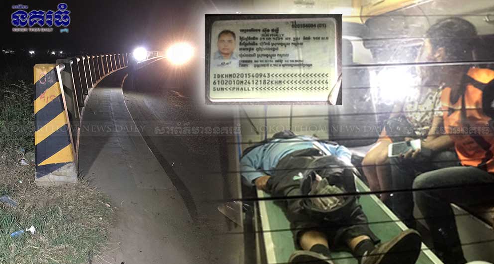ភ្នំពេញ ៖ បុរសម្នាក់ទើបនឹងចេញពីហូបការមិត្តភក្តិ ជិះម៉ូតូបំណងត្រលប់ទៅផ្ទះវិញ លុះដល់ពាក់កណ្តាលផ្លូវ ក៏ជ្រុលចង្កូតទៅបុកនឹងបង្កាន់ដៃស្ពាន បណ្តាលឱ្យដួលបោកក្បាលទៅនឹងផ្លូវបែកក្បាលហូរឈាមស្លាប់នៅកន្លែងកើតហេតុ យ៉ាងអាណោចអធ័ម កាលពីវេលាម៉ោង១០យប់ ថ្ងៃទី១៥ ខែធ្នូ ឆ្នាំ២០១៧ នៅចំណុចស្ពាន៧មករាត្រើយខាងជើង តាមបណ្តោយផ្លូវជាតិលេខ៣ ស្ថិតក្នុងភូមិទឹកថ្លា សង្កាត់ក្រាំងពង្រ ខណ្ឌដង្កោ។
