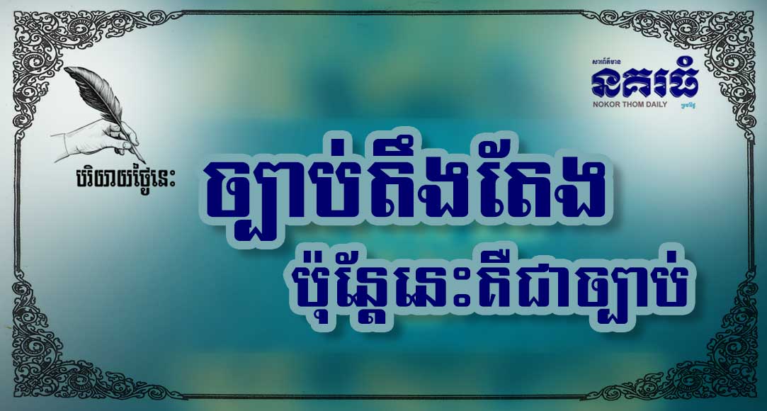 សុភាសិតបារាំងថា “ច្បាប់តឹងតែង ប៉ុន្តែនេះគឺជាច្បាប់” La loi est dure mais c’est la loi” មានខ្លឹមសារផ្តោត ជាសំខាន់ទៅលើច្បាប់ សម្រាប់ប្រទេសនីមួយៗ ដែលចងក្រងឡើង ស្របតាមការចង់បានរបស់អ្នកដឹកនាំប្រទេស។ ធម្មតា ច្បាប់ “មានតឹង មានធូរ” ប៉ុន្តែ ទោះជាច្បាប់ប្រភេទណាក់វាជាច្បាប់ដូចគ្នា ចាំបាច់ត្រូវតែគោរព ដូចករណីអតីតមន្ត្រីបក្ស ប្រឆាំង ចោទប្រកាន់ថា “ច្បាប់ស្តីពីគណបក្សនយោបាយ” តឹងតែងហួសហេតុ ប៉ុន្តែ ចៀសអនុវត្តមិនរួច ដែល “នគរធំ” សូមលើកមកធ្វើប្រធានបទបរិយាយថ្ងៃនេះ…។