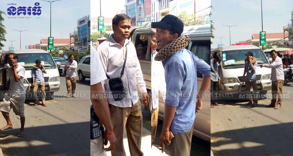 ភ្នំពេញ ៖ អ្នកជិះរថយន្តឈ្នួលម្នាក់ ត្រូវអ្នកដេញចាប់ម៉ូយយកទៅញាត់ទ្រាំលែងបានទាមទារចុះពាក់កណ្តាលផ្លូវ ម្ចាស់រថយន្តទារលុយ ក៏កើតជម្លោះមាត់តូច មាត់ធំដាក់គ្នាផ្អើលអ្នកជិតខាង ទើបសមត្ថកិច្ចចេញទៅសម្របសម្រួល កាលពីវេលាម៉ោង១២និង៣០នាទីរសៀលថ្ងៃទី១៦ ខែមករា ឆ្នាំ២០១៨ លើកំណាត់ផ្លូវសហព័ន្ធរុស្ស៊ី ខាងមុខប៉ុស្តិ៍កាកាប១ ខណ្ឌពោធិ៍សែនជ័យ។