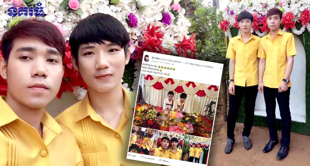 ខេត្តសៀមរាប ៖ ជារឿងគួរឱ្យភ្ញាក់ផ្អើលមួយនៅក្នុងបណ្តាញសង្គមហ្វេសប៊ុក ខណៈដែលយុវជន២នាក់ដែលជាគូស្នេហ៍ភេទដូចគ្នា បានសម្រេចចិត្តដឹកដៃគ្នាចូលរោងការ សាងសុភមង្គលគ្រួសារប្រាថ្នារួមរស់ជាមួយគ្នារហូតតរៀងទៅ ដោយមិនទទួលយកស្នេហាភេទផ្ទុយគ្នា (មនុស្សស្រី) ចូលមកក្នុងប្រអប់បេះដូងរបស់ពួកខ្លួនឡើយ។
