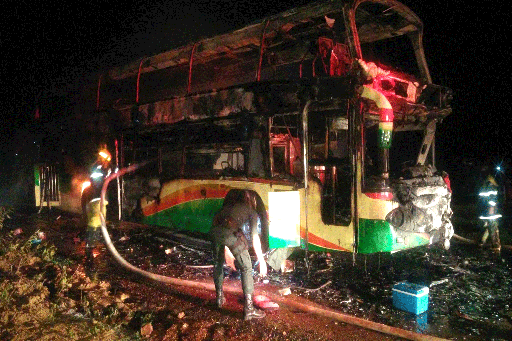 ទិដ្ឋភាពរថយន្ដក្រុងកំពុងឆេះ