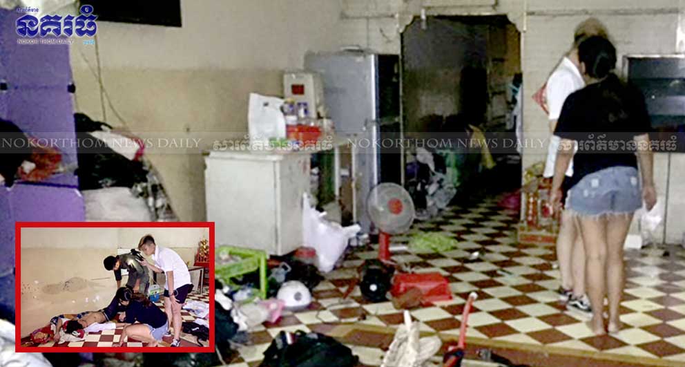 តាមប្រភពពីសមត្ថកិច្ចប៉ុស្តិ៍មនោរម្យ បានបញ្ជាក់ប្រាប់ថា នៅមុនពេលកើតហេតុ មានសេចក្តីរាយការណ៍ពីបងប្អូនរបស់ជនរងគ្រោះថា ជនរងគ្រោះឈ្មោះពិសិដ្ឋ ស្នាក់នៅផ្ទះជាន់ទី៣ ម្តុំផ្សារឌុយមិច តូចចិត្តឈ្លោះគ្នាជាមួយប្រពន្ធកំពុងតែអារដៃបម្រុងសម្លាប់ខ្លួន លុះពេលសមត្ថកិច្ច ឡើងទៅដល់បើកទ្វារបន្ទប់ចូលទៅក៏ប្រទះឃើញឥវ៉ាន់ និងខោអាវរាយប៉ាយពេញក្នុងផ្ទះ ចំណែកជនរងគ្រោះកំពុងដេកសន្លប់ស្តូកស្តឹងក្នុងថ្លុកឈាម និងមានឈាមប្រឡាក់ពេញផ្ទះ។