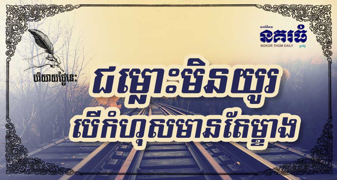 អ្នកនយោបាយបារាំងម្នាក់ មិនស្គាល់ឈ្មោះ បានទុកទស្សនៈបែបប្រាកដនិយមថា “រឿងជម្លោះទាំងឡាយ ពុំអាចនឹង ឋិតថេរនៅយូរអង្វែងបានឡើយ ប្រសិនបើកំហុសមានជ្រុងជ្រោយតែម្ខាង” (Les querelles ne dureraient pas long- temps si le tout n’état que d’un cÔté) មានអត្ថន័យផ្តោតទៅលើជម្លោះនយោបាយ បើកើតឡើងរវាងប្រទេសមួយ និងប្រទេសមួយ ឬជាតិសាសន៍មួយនិងជាតិសាសន៍មួយ មិនងាយចប់ទេ ប៉ុន្តែ បើជម្លោះជាមួយជាតិសាសន៍ឯង នឹងមិនបានយូរ ឡើយ ដែល “នគរធំ” សូមលើកទស្សនៈខាងលើមកធ្វើប្រធានបទបរិយាយថ្ងៃនេះ…។