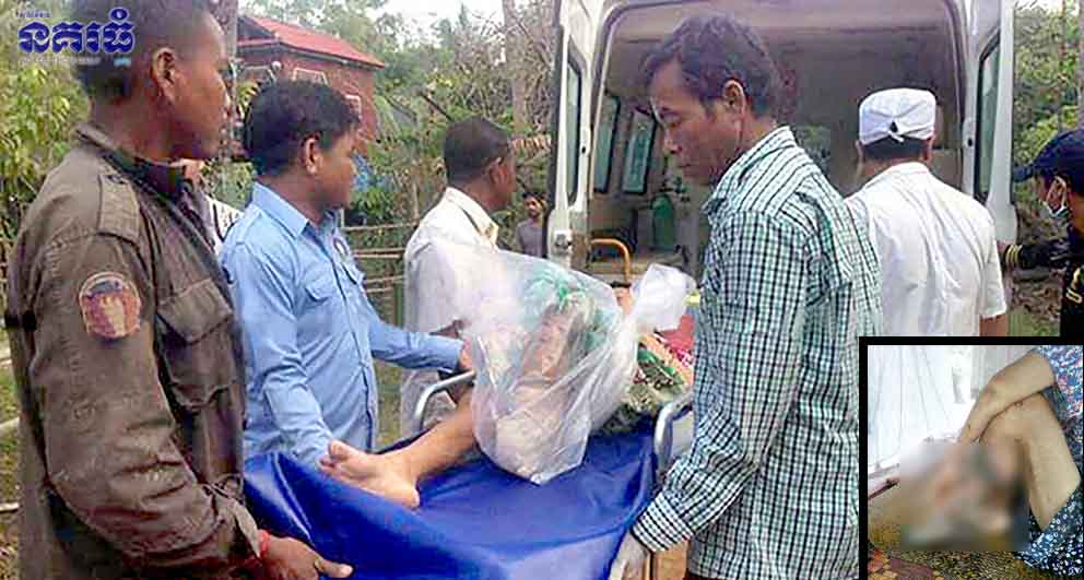 ស្ត្រីរងគ្រោះដែលត្រូវពស់ចឹកខាងលើ ត្រូវបានក្រុមគ្រួសារដឹកបញ្ជូនមកកាន់មន្ទីរពេទ្យបង្អែកខេត្តកំពង់ឆ្នាំង កាលពីថ្ងៃទី២៩ ខែមករា ឆ្នាំ២០១៨។