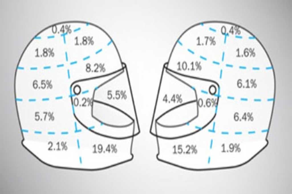 ការស្រាវជ្រាវខាងលើត្រូវបានអនុវត្តដោយ Diemar Otte, ជាផ្នែកស្រាវជ្រាវគ្រោះថ្នាក់ចរាចរណ៍ស្ថិតនៅសាកលវិទ្យាល័យវេជ្ជសាស្ត្រ Hannover (អាល្លឺម៉ង់) អំពីការរងរបួសតំបន់ក្បាលពេលពាក់មួក សុវត្ថិភាពពេលជិះម៉ូតូ ។