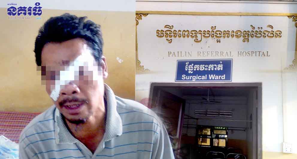 ខេត្តប៉ៃលិន ៖ បុរសពិការជើងម្នាក់បានឈ្លោះប្រកែកគ្នាជាមួយប្រពន្ធ ស្រាប់តែត្រូវកូនប្រុសស្ទុះទៅទាញដុំថ្ម មកវាយចំផ្ទៃមុខបណ្តាល ឱ្យបាក់ក្តោងច្រមុះ រងរបួសធ្ងន់សន្លប់ស្តូកស្តឹង តាំងពីវេលាម៉ោង៤ និង៣០នាទីរសៀល ថ្ងៃទី២៧ ខែមីនា ឆ្នាំ២០១៨ នៅចំណុចក្បែរផ្សារត្រីថ្មី ក្បែរផ្ទះជួលស្នាក់នៅរបស់ជនរងគ្រោះ ស្ថិតក្នុងភូមិប៉ាហ៊ីជើង សង្កាត់ប៉ៃលិន ក្រុងប៉ៃលិន ប៉ុន្តែជនរងគ្រោះទើបនឹងដាច់ចិត្តទម្លាយរឿងរ៉ាវ កាលពីរសៀល ថ្ងៃទី០១ ខែមេសា ឆ្នាំ២០១៨។