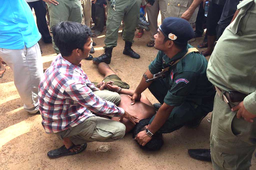 លោក ពុយ ទ្រី បានបញ្ជាក់ទៀតថា ក្រោយពីមានហេតុការណ៍កើតឡើងលោកបានដឹកនាំកម្លាំងនគរបាលប៉ុស្តិ៍ចុះទៅអន្តរាគមន៍ ខណៈទៅដល់បុរសបែកថ្នាំមានភាពកាចសាហាវនោះបានដេញកាប់ទៅលើមន្ត្រីនគរបាលប៉ុស្តិ៍ បណ្តាលឲ្យត្រូវចំវិទ្យុទាក់ទងរងការខូចខាត តែសំណាងល្អមិនមានរបួស។ ដោយឃើញពីភាពកាចសាហាវនេះ លោកបានរាយការណ៍ជូនលោកវរសេនីយ៍ទោ សេង សុជាតិ អធិការនគរបាលស្រុក សុំកម្លាំងអន្តរាគមន៍ជួយបន្ថែមទៀត ។ ពេលកងកម្លាំងចុះទៅដល់ព្យាយាមលួងលោមយ៉ាងណាក៏ជនសង្ស័យនៅតែមិនស្តាប់ ទើបសមត្ថកិច្ចសម្រេចចិត្តប្រើប្រាស់ដំបងវាយជនសង្ស័យឲ្យធ្លាក់កំបិតពីដៃ គ្រានោះជនសង្ស័យបានដេញកាប់ទៅលើលោកអធិការរងបណ្តាលឲ្យលោករអិលជើងដួលទៅលើដី ខណៈនោះជនសង្ស័យយាកាំបិតរកកាប់បន្ថែមតែត្រូវបានកម្លាំងសមត្ថកិច្ចយកដំបងខ្ទាស់ជាប់ ទើបមិនបណ្តាលឲ្យលោកអធិការរងៗរបួសធ្ងន់ ។