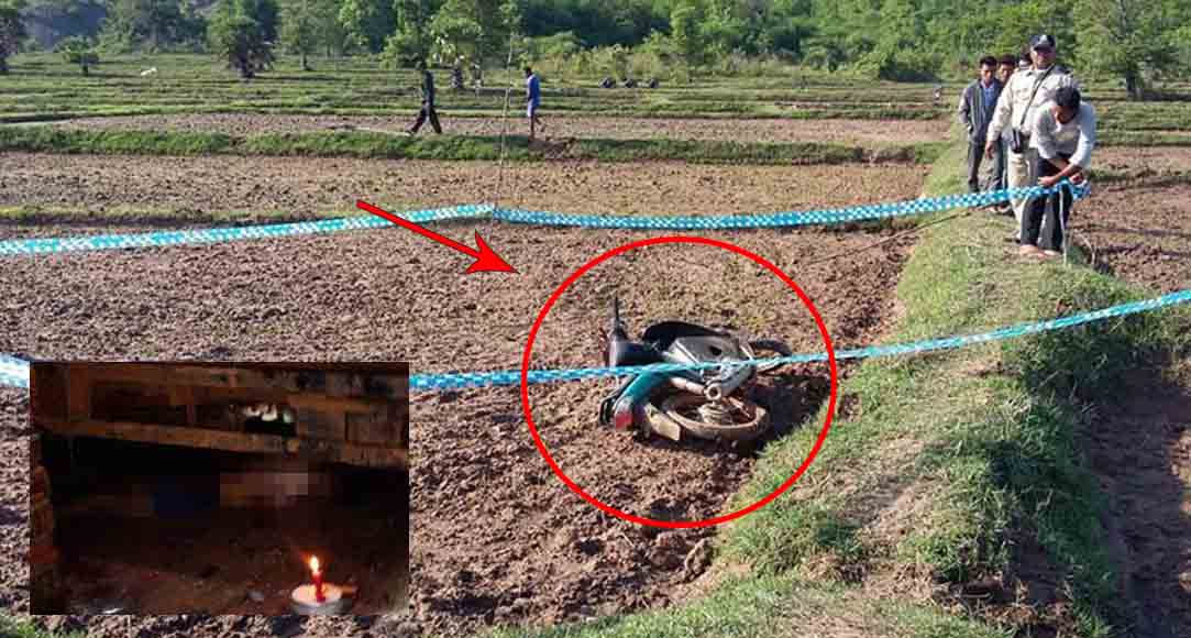 ម៉ូតូ១គ្រឿងដែលត្រូវបានគេផ្តួលចោលក្បែរភ្លឺស្រែនេះ ម៉ាកយ៉ាម៉ាហាហ្វ្រេស ពណ៌ស្លែលាយក្រហម គ្មានពាក់ស្លាកលេខ និងត្រូវ សមត្ថកិច្ចដាក់ការសន្និដ្ឋានជាជំហានដំបូងថា គឺជាម៉ូតូរបស់ខ្មាន់កាំភ្លើង។