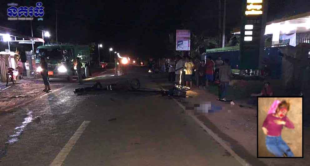 ប្តីប្រពន្ធចេញពីធ្វើការ ម៉ូតូបុកប្តីស្លាប់ ប្រពន្ធរបួសធ្ងន់