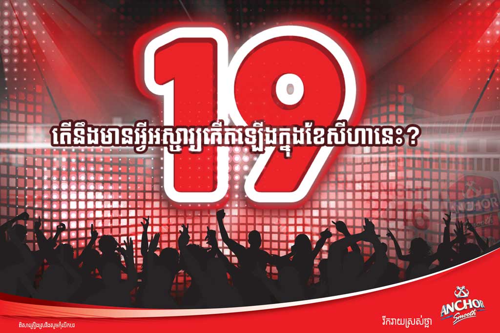 ព័ត៌មានបន្ថែមនិងថ្មីៗអំពីកម្មវិធី នឹងត្រូវប្រកាសជាសាធារណះ នៅថ្ងៃទី 19 ខែសីហាខាងមុខក្នុងកម្មវិធី ក៏ដូចជានាំជូនលោកអ្នកនូវបទពិសោធន៍ថ្មីដែលមិនធ្លាប់មានពីមុននៅក្នុងប្រទេសកម្ពុជា ហើយក៏វាជាឱកាសពិសេសមួយដែលលោកអ្នកអាចទទួលយកនូវអារម្មណ៍ស្រស់ថ្លា និងក្រេបរសជាតិដ៏ស្រទន់ ពីស្រាបៀរ Anchor ។