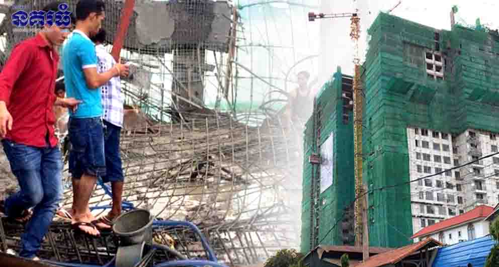 ភ្នំពេញ ៖ កម្មករសំណង់មួយក្រុមបានឡើងទៅបំពេញការងាររបស់ខ្លួននៅជាន់ទី២៣ នៃអគារខុនដូរទើបនឹងសាងសង់ ស្រាប់តែអកុសលត្រូវប្លង់សេដែលទើបនឹងចាក់នៅជាន់ទី២៣ (មិនទាន់ជាប់ល្អ) បានបាក់មកសង្កត់ បណ្តាលឱ្យកម្មករចំនួន៥នាក់ បានទទួលរងរបួសធ្ងន់ ស្រាល ដោយឡែកកម្មករ២នាក់ផ្សេងទៀត មានវាសនាអភ័ព្វជាងគេ ត្រូវផ្ទាំងប្លង់សេសង្កត់ស្លាប់យ៉ាងអាណោចអាធ័ម និងជាប់ក្រោមគំនរប្លង់សេរាប់ម៉ោង ទម្រាំក្រុមការងារអាចគាស់យកសាកសពចេញមកវិញបាន។