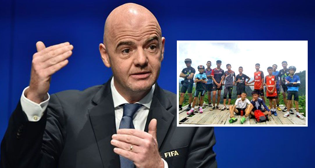 កាលពីថ្ងៃព្រហស្បតិ៍ លោក Gianni Infantino បានផ្ញើលិខិតទៅប្រធានសហព័ន្ធកីឡាបាល់ទាត់ថៃ ដោយអញ្ជើញក្រុមក្មេងៗ និងគ្រូបង្វឹករបស់ពួកគេ ប្រសិនបើពួកគេមានសុខភាពល្អ និងចាកចេញពីរូងភ្នំបានទាន់ពេល ប្រកួតវគ្គផ្តាច់ព្រ័ត្របាល់ទាត់ពិភពលោក២០១៨។