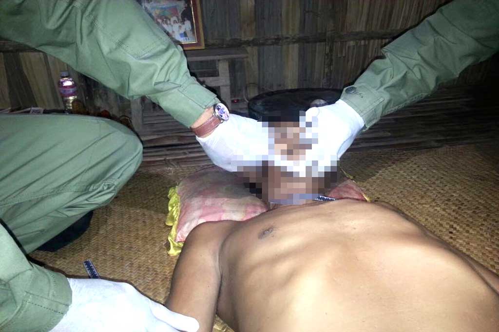 ក្រោយពីឃើញដូច្នេះស្ត្រីជាប្រពន្ធ និងក្រុមគ្រួសារសាច់ញាតិបានស្រាយជនរងគ្រោះចុះតម្កល់លើគ្រែក្រោមផ្ទះ ទើបរាយការណ៍ប្តឹងសមត្ថកិច្ចនគរបាលមូលដ្ឋាន ។