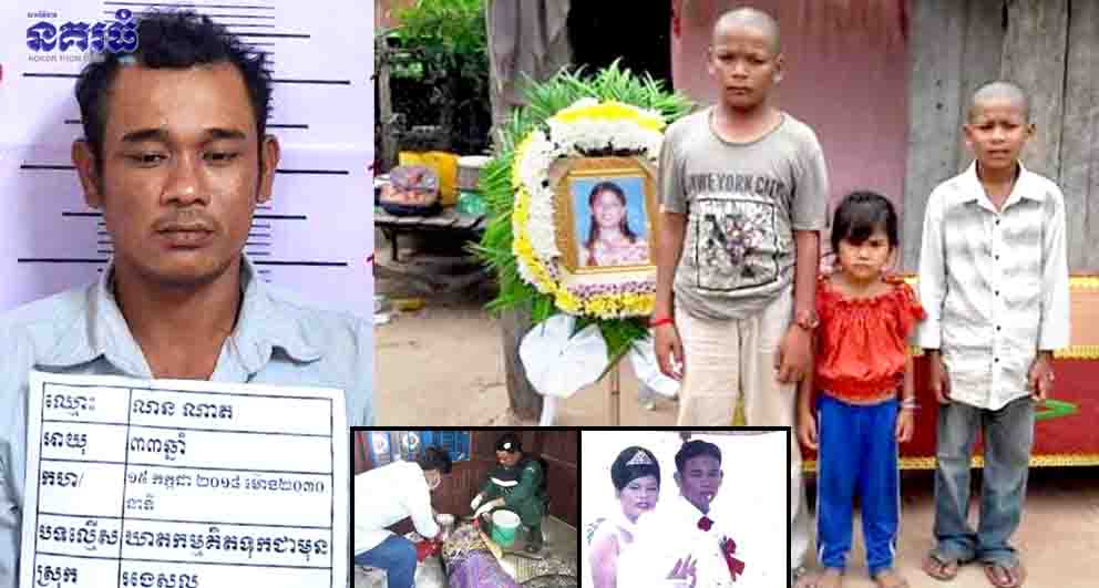 ខេត្តកណ្តាល ៖ បុរសជាប្តីចិត្តកំណាចឃោរឃៅម្នាក់ ព្រោះតែមានចិត្តប្រចណ្ឌប្រពន្ធខ្លាំងពេក ក៏ចងគំនុំទុកក្នុងចិត្ត លុះឃើញស្ត្រីជាប្រពន្ធកំពុងដេកលង់លក់ ក៏ទាញពូថៅកាប់ប្រពន្ធចំនួន៥ពូថៅចំក្បាល បណ្តាលឱ្យស្លាប់ក្នុងថ្លុកឈាម រួចក៏យកភួចគ្រប លុះព្រឹកឡើងក៏នាំកូន តូច២នាក់ ជិះម៉ូតូគេចខ្លួនទៅស្រុកកំណើត ទីបំផុត ក៏ត្រូវសមត្ថកិច្ចស្រាវជ្រាវចាប់ខ្លួនបាននាំយកមកផ្តន្ទាទោសតាមច្បាប់។
