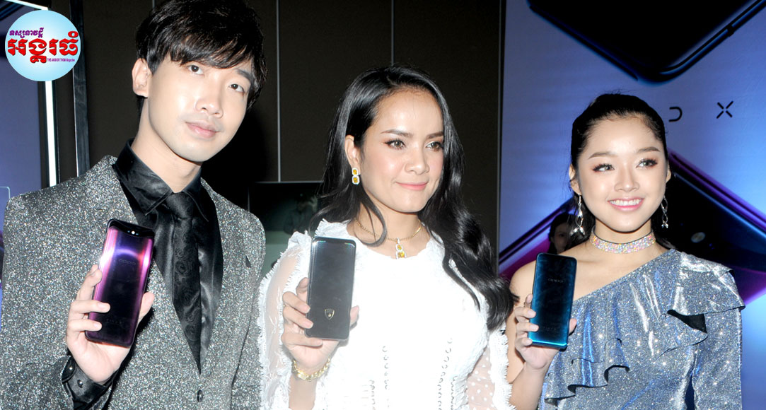 ពេជ្រ សោភា, រ៉េត ស៊ូហ្សាណា និងលោក Step បានឈរកាន់ទូរស័ព្ទម៉ូឌែលថ្មី Oppo Find X នេះឱ្យអ្នកកាសែតថតដោយរីករាយ ហើយតារាទាំង3 ក៏បានបង្ហាញពីគុណភាពនៃទូរស័ព្ទដ៏ទំនើបនេះដល់ភ្ញៀវទាំងអស់ដែលចូលរួមផងដែរ។