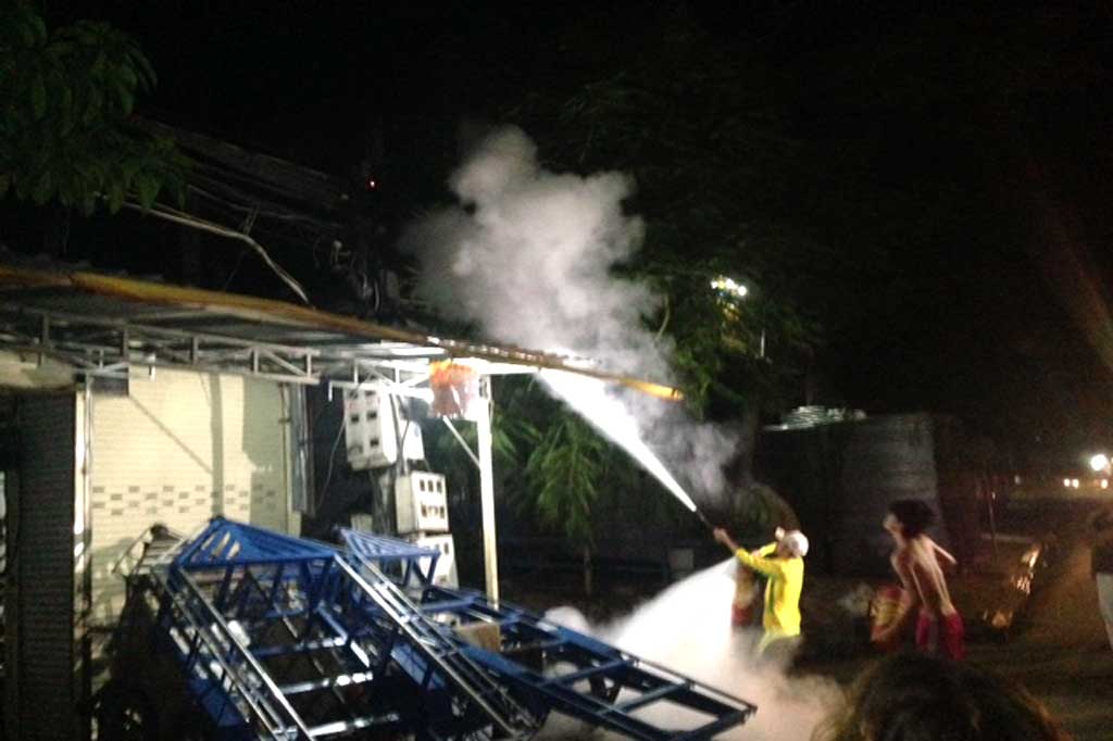 ភ្នំពេញ៖ បន្ទាប់ពីមេឃភ្លៀងបង្គោលភ្លើងមួយកន្លែង បានជាផ្ទុះចេញជាអណ្តាតភ្លើងឆាបឆេះបង្កឲ្យមានការភ្ញាក់ផ្អើលកាលពីវេលាម៉ោង១ និង៤០នាទីរំលងអាធ្រាត្រឈានចូលថ្ងៃទី២៣ ខែសីហា នៅទល់មុខភោជនីយដ្ឋាននិងខារ៉ាអូខេ នគរបុរី ដែលស្ថិតនៅផ្លូវ២៧១ សង្កាត់ផ្សារដើមថ្កូវ ខណ្ឌចំការមន ។
