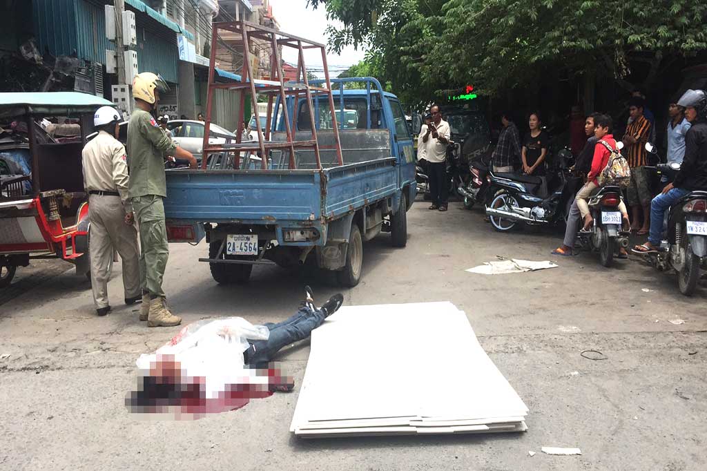 ភ្នំពេញ៖ បុរសម្នាក់ បានបើករថយន្តដឹកម្នាងសិលាចំនួន១៥សន្លឹក ដើម្បីយកទៅធ្វើឲ្យគេដោយមានកម្មករអង្គុយពីក្រោយ លុះបើកមកដល់ចំណុចផ្លូវ២០២ កែងផ្លូវ២២៩ រថយន្តបានបត់ឆ្វេងឡើងលើទួលទៅផ្លូវ២២៩ ស្រាប់ដាច់ខ្សែចងម្នាងសិលាធ្លាក់កម្មករចុះមកក្រោមបោកក្បាលពីក្រោយជាមួយនិងថ្នល់ បណ្ដាលឲ្យស្លាប់ភ្លាមៗតែម្ដង ។ ហេតុការណ៍ខាងលើនេះ បានបង្កការភ្ងាក់ផ្អើលកាលពីវេលាម៉ោង១១និង២៥នាទីព្រឹកថ្ងៃទី២៣ ខែសីហា ឆ្នាំ២០១៦ នៅចំណុចផ្លូវ២០២ កែង២២៩ ភូមិ៩ ក្រុម៣៩ សង្កាត់ផ្សារដេប៉ូ១ ខណ្ឌទួលគោក ។