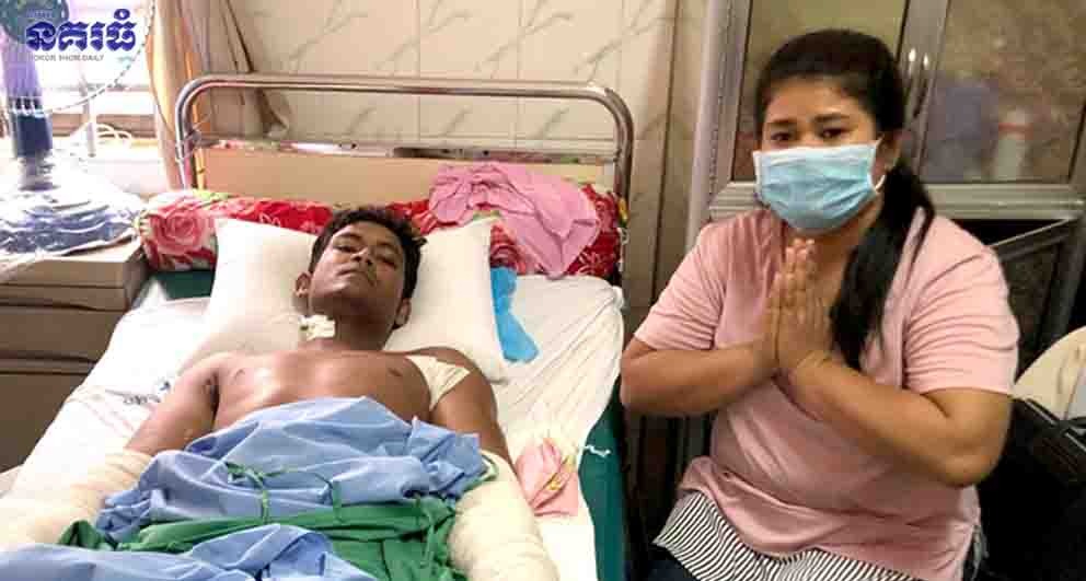 ភ្នំពេញ ៖ បុរសជាកម្មករសំណង់ម្នាក់ កំពុងបំពេញការងារសុខៗ ក៏ស្រាប់តែជួបគ្រោះអកុសល ត្រូវខ្សែភ្លើងឆក់ បណ្តាលឱ្យឆេះខ្លោចដៃ និងដងខ្លួន រួចធ្លាក់ពីលើជាន់ទី២ បណ្តាលឱ្យរងរបួសយ៉ាងធ្ងន់ធ្ងរ និងកំពុងប្រឈមនឹងការកាត់ដៃចោល ចំណែកជីវភាពគ្រួសារទីទ័លក្រ ដោយស្ត្រីជាប្រពន្ធមានប្រាក់តែចំនួន៣ម៉ឺនរៀលប៉ុណ្ណោះនៅជាប់ខ្លួន ជាហេតុធ្វើឱ្យគ្មានលទ្ធភាពព្យាបាលប្តី ដាច់ចិត្តលើកដៃសំពះសុំការជួយសង្គ្រោះពីសប្បុរសជន។