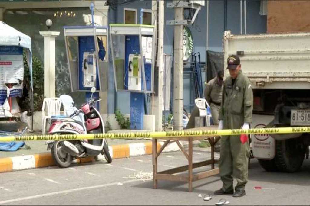 ថៃ៖ ប៉ូលិសនិយាយ ថាយ៉ាងហោច ណាស់ មានជនជាតិ ថៃម្នាក់ត្រូវបា នសម្លាប់ និង៣០នាក់ ផ្សេងទៀតរង របួស ក្នុងហេតុ ការណ៍ ផ្ទុះ គ្រាប់ បែកពីរ គ្រាប់កាល ពីយប់ថ្ងៃអង្គារ នៅក្បែរសណ្ឋាគារ មួយក្នុងទីក្រុង ឆ្នេរសមុទ្រ ប៉ាត់តានី គឺមិនដល់ពីរ សប្តាហ៍ ផងក្រោយពីមានការបំផ្ទុះ គ្រាប់បែក ជាច្រើន្រាប់ក្នុង តំបន់ភាគខាងត្បូងនេះ។