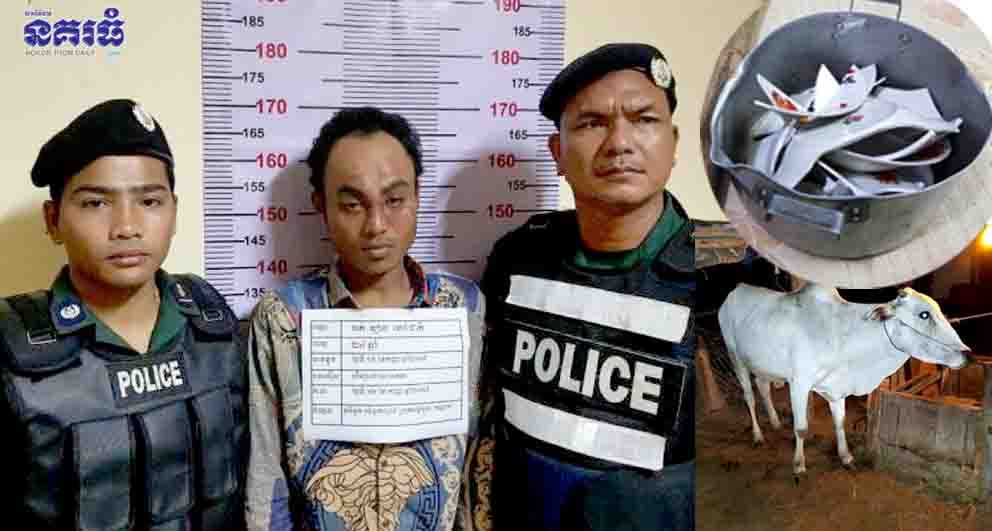 ខេត្តកណ្តាល៖ យុវជនម្នាក់ ក្រោយពី ផឹកស្រាស្រវឹងជោក ក៏បានដើរទៅផ្ទះម្តាយមីង របស់ខ្លួន រួចធ្វើសកម្មភាពទាញដំបងវាយបំផ្លាញចានឆ្នាំង បណ្តាលឱ្យបែកខ្ទេចខ្ទី ព្រមទាំងទាញអំបែងចានគប់ជើងគោរបស់ម្តាយមីង ដែលចងទុកនៅក្រោមផ្ទះ បណ្តាលឱ្យរបួសទៀត លុះមិនទាន់អស់ចិត្ត ក៏ឡើងទៅលើផ្ទះធាក់ ម្តាយមីងរបស់ខ្លួនដែលកំពុងដេកបំបៅដោះកូនចំនួន៥ជើង បណ្តាលឱ្យរងរបួស ទីបំផុតត្រូវសមត្ថកិច្ចចាប់វាយខ្នោះ នាំយកទៅចាត់ការតាមច្បាប់។