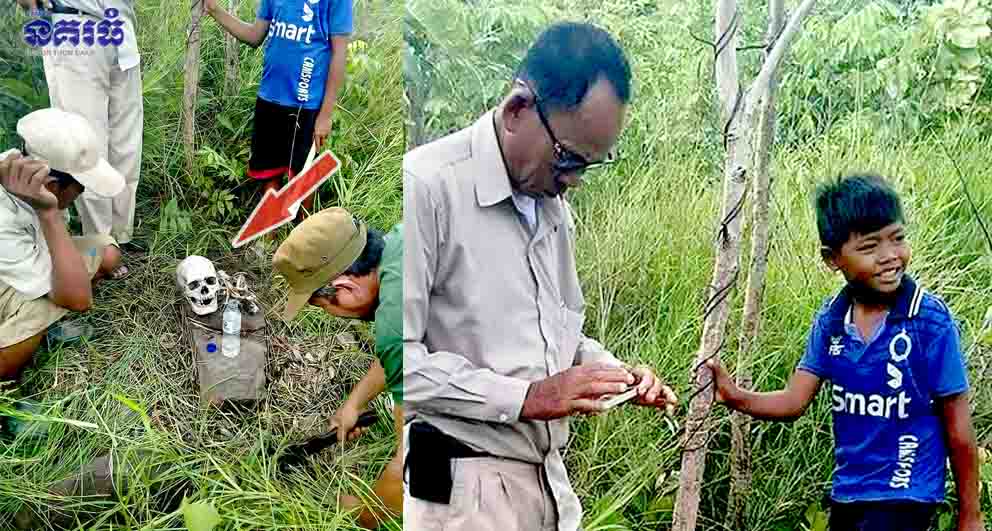 តាមសម្តីក្មេងប្រុសឈ្មោះជា សៀងហៃ បានរៀបរាប់ប្រាប់ថា នៅមុនពេលកើតហេតុ រូបគេបានដឹកគោ ចេញទៅឃ្វាលនៅម្តុំកើតហេតុខាងលើ។ បន្ទាប់មក រូបគេក៏បានដើរលេងនៅក្បែរៗនោះ ស្រាប់តែប្រទះឃើញគ្រោងឆ្អឹងមនុស្ស ពិសេសលលាដ៍ក្បាលនៅក្នុងដុបព្រៃមួយកន្លែង ជាហេតុធ្វើឱ្យរូបគេភ័យប៉ះសក់ ក៏រត់ត្រឡប់មកផ្ទះវិញ ប្រាប់ឪពុកម្តាយ ហើយឪពុកម្តាយក៏រាយការណ៍ប្រាប់សមត្ថកិច្ចចុះមកជួយអន្តរាគមន៍តែម្តង។