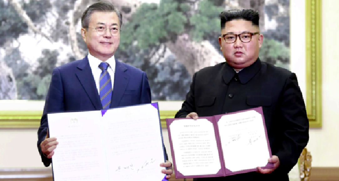 សម្រាប់កិច្ចប្រជុំកំពូលថ្ងៃទី02 រវាងមេដឹកនាំកូរ៉េខាងត្បូង លោកមូន ជេអ៊ីន និងមេដឹកនាំកូរ៉េខាងជើង គីម ជុងអ៊ុន បានចេញសេចក្តីថ្លែងការណ៍រួម ជាមួយនឹងការប្តេជ្ញាចិត្តកាត់បន្ថយភាពតានតឹងផ្នែកយោធា នៅតាមបណ្តោយព្រំដែនឧបទ្វីបកូរ៉េ។