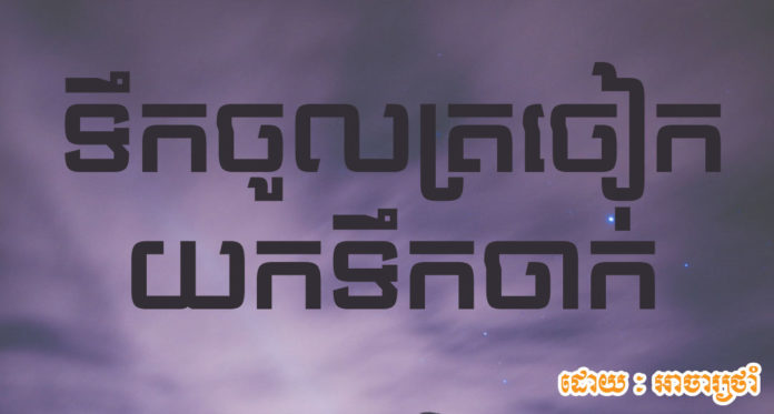សរុបទៅ “ទឹកចូលត្រចៀក យកទឹកចាក់” គ្រាន់តែជាការបកស្រាយមរតកសាសន៍របស់កវីបណ្ឌិតខ្មែរតែប៉ុណ្ណោះ ព្រោះលោកចង់បង្ហាញពីផលវិបាកនៃការសាចទឹកដាក់គ្នា នាំឱ្យស្អុយត្រចៀក។ ហេតុនេះបើអ្នកនយោបាយ លេងតែក្បួនដដែលៗ អត់ចំណេញទេ ព្រោះគូជម្លោះទាំងសងខាង សុទ្ធតែជាខ្មែរ ពូជសាងអង្គរដូចគ្នា គួរប្តូរទៅជា “លោកិយភ្ជាប់អច្ឆរិយ” វិញ ទើបចំណេញធំ…៕