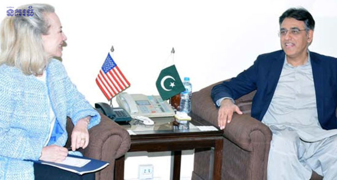 លោកស្រី Alice Wells ជំនួយការរដ្ឋមន្ត្រីក្រសួងការបរទេស បានជួបជាមួយនឹងលោក Asad Umar រដ្ឋមន្ត្រីក្រសួងហិរញ្ញវត្ថុប៉ាគីស្ថាន បានជួបពិភាក្សាគ្នាដើម្បីស្វែងរកកិច្ចសហប្រតិបត្តិការពង្រឹងទៅលើផ្នែកសេដ្ឋកិច្ច និងស្ថានភាពសន្តិសុខរួម នៅក្នុងតំបន់។